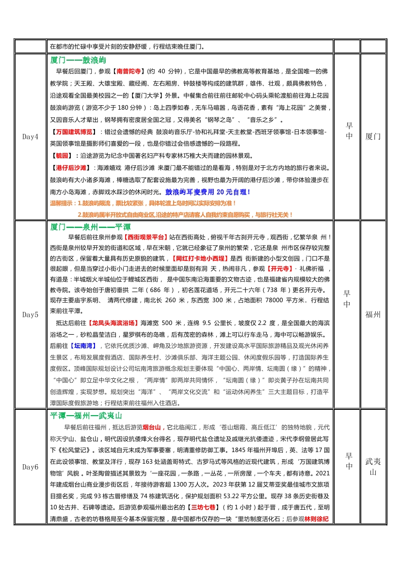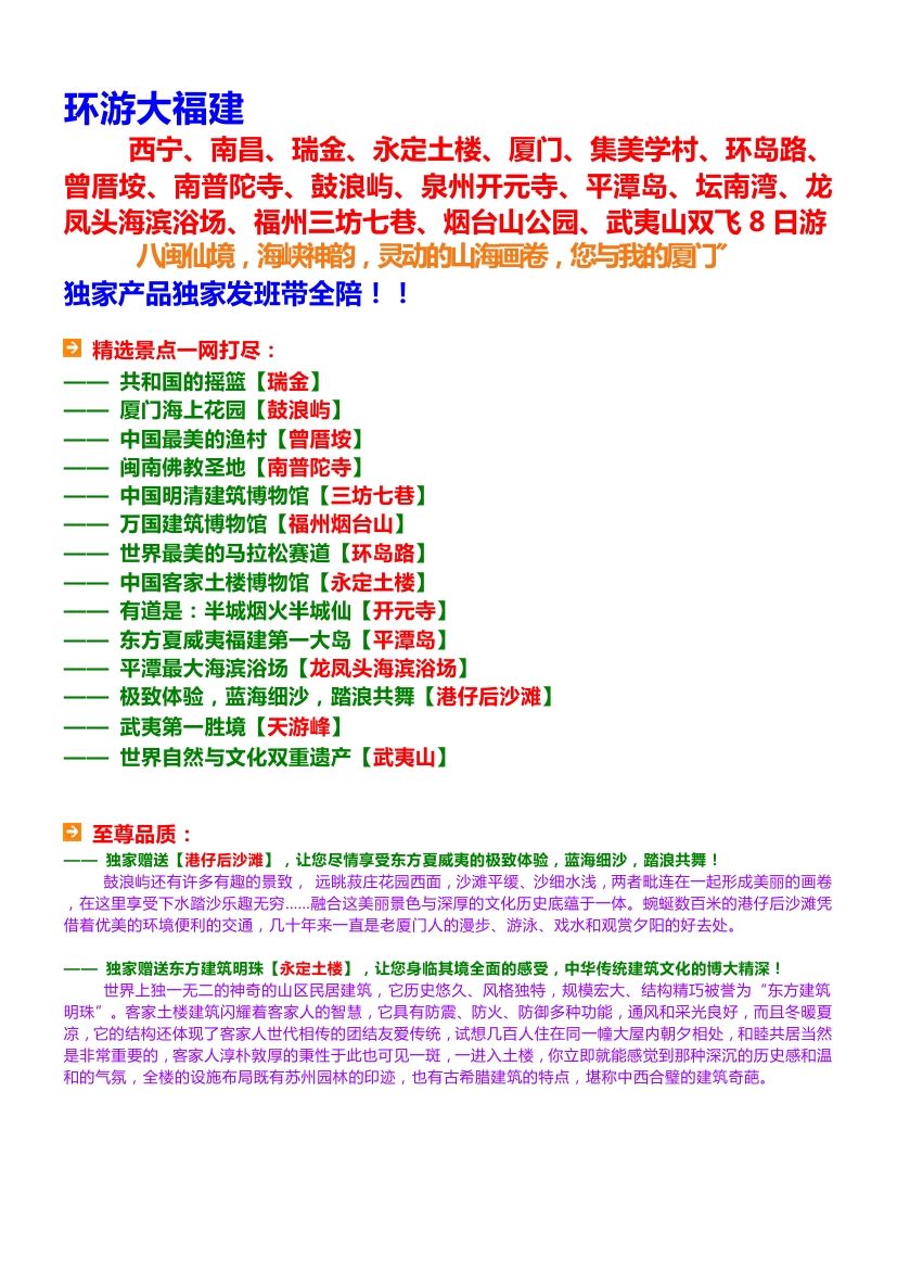 双重世遗的震撼:踏上【鼓浪屿】,在万国建筑与琴声中感受“海上花园”的文艺;走进【永定土楼】,仰望东方城堡般的宏大与和谐,体验客家人“家”的哲学。海岛与城市的浪漫切换:在厦门【环岛路】骑行追风,在【平潭岛】守望风车田与可能邂逅的“蓝眼泪”;漫步【福州烟台山】,在近代使馆建筑与潮流小店间,感受“万国建筑博物馆”的今昔。闽地文化的深度漫步:穿梭于【三坊七巷】的坊弄间,触摸“半部中国近代史”;走进泉州【开元寺】,在千年古刹与东西塔下,感受“世界宗教博物馆”的沉淀。烟火与文艺的交融:探访【曾厝垵】的文创渔村,品尝地道小吃;在土楼里喝一杯客家米酒,听一段家族往事。
