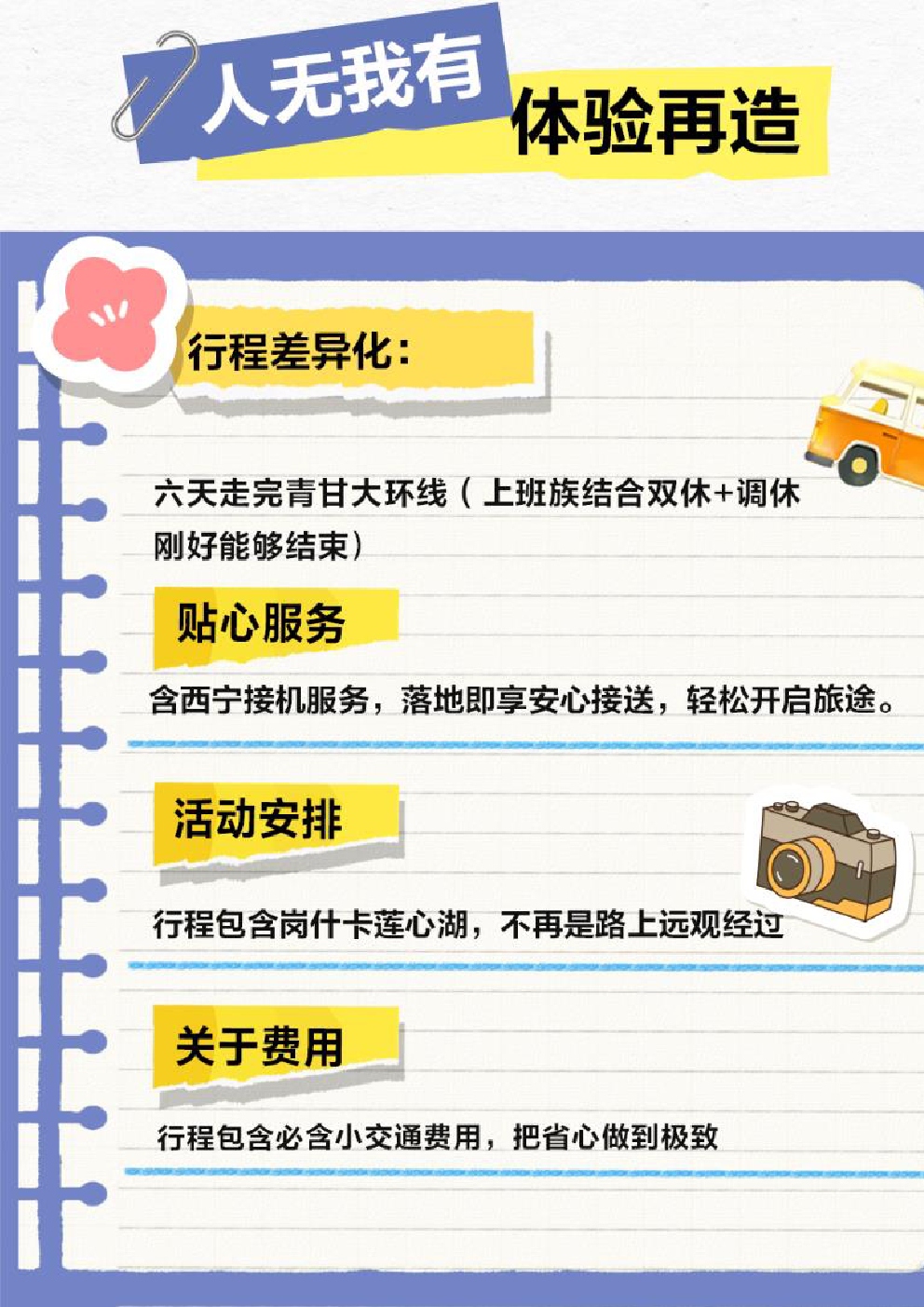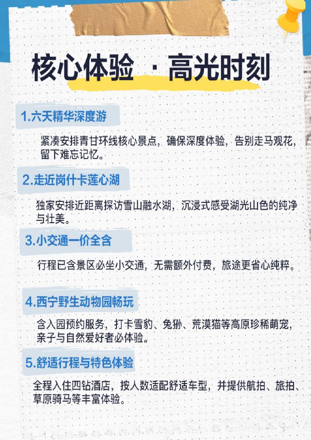 紧凑安排青甘环线核心景点,确保深度体验,告别走马观花:留下难忘记忆。独家安排近距离探访雪山融水湖,沉浸式感受湖光山色的纯净与壮美。