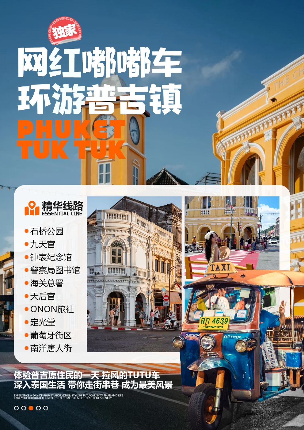 精华线路十里是汇发得石桥公园九天宫钟表纪念馆警察局图书馆海关总署天后宫ONON旅社定光堂葡萄牙街区南洋唐人街体验普吉原住民的一天拉风的TUTU车深入泰国生活带你走街串巷成为最美风景