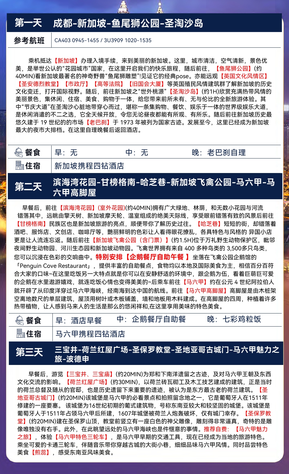 超值MIEG独家赠送飞离公园+企鹅餐厅自助餐价值399元味蕾飨宴FEASTYOURTASTEBUDS独家七彩鸡粒饭x网红ROTITISSUE飞饼+拉茶特色肉骨茶/源昌隆娘惹餐0经典景点CLASSCSCENICSPOT成都首推-联邦清真寺鱼尾狮公园/双子塔(91四/马六甲/太子城