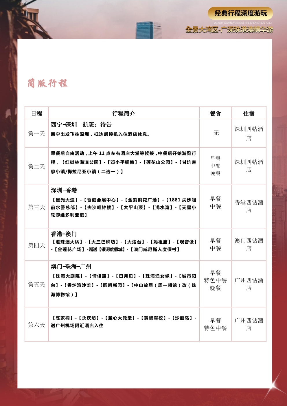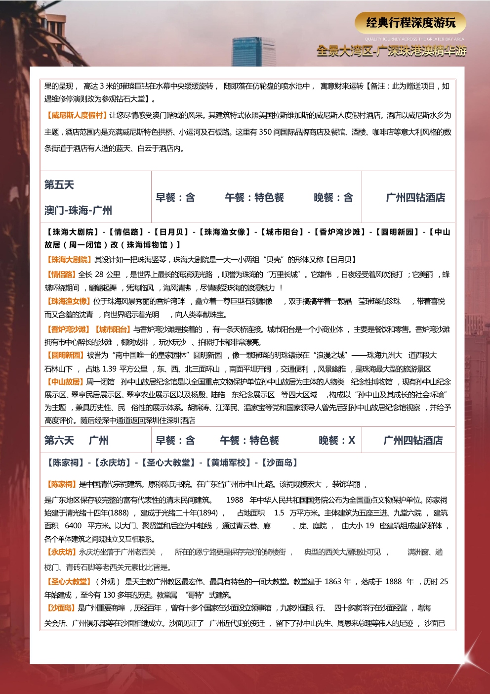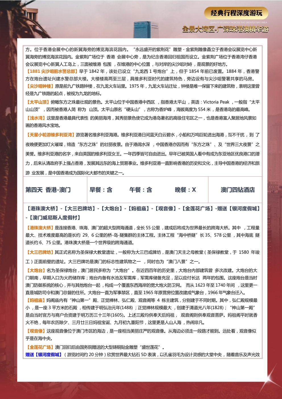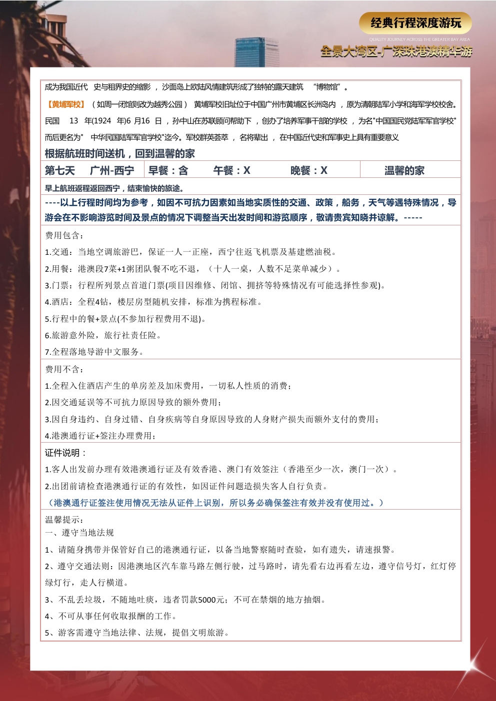 爱心陪护用心打造,品质旅游选择我们,五大专享福利开启旅游新篇章!全程贴心服务让旅行更加完美广深珠港澳一次出行五城联运岭南特色中式围餐品味美食夜间查房服务(无线网、热水、淋浴等)免费使用无忧转换插头