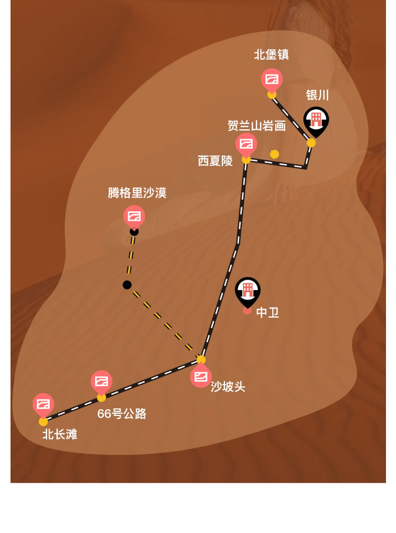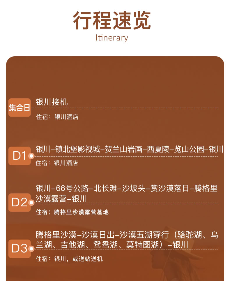 3天玩转宁夏精华,打卡66号公路、沙漠落日露营、越野穿行粉红乌兰湖,随走随停mini私家团,含沙漠日出+西夏陵人文体验,告别传统大团走马观花。